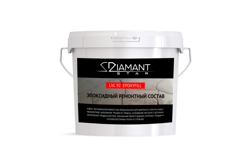 Четырёхкомпонентный эпоксидный тиксотропный клей с регулируемой вязкостью предназначен для широкого спектра работ: монолитное заполнение трещин в стяжках; склеивание металла с бетоном; заполнение трещин в бетоне; локальный ремонт выбоин, крупных трещин и сколов в бетонных полах и ступенях.