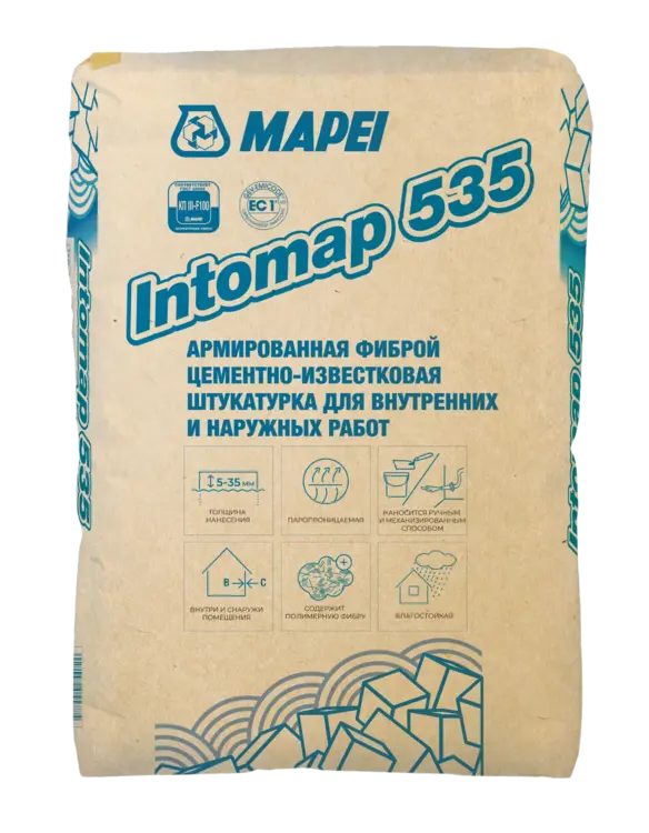 Армированная фиброй штукатурная смесь для выравнивания новых и старых оснований, в т.ч. с пониженной прочностью (бетонных, кирпичных, ячеистых и керамзитобетонных блоков, камня, туфа или смешанной кладки). Выравнивание стен и потолков внутри и снаружи помещения под окрашивание, оклеивание обоями, монтажа плитки и натурального камня, финишное выравнивание шпатлевками. Для помещений с сухим, нормальным и мокрым влажностным режимом. Для расшивки швов между рядами камней, кирпича и туфа. Подходит для реставрации зданий представляющих историческую ценность.