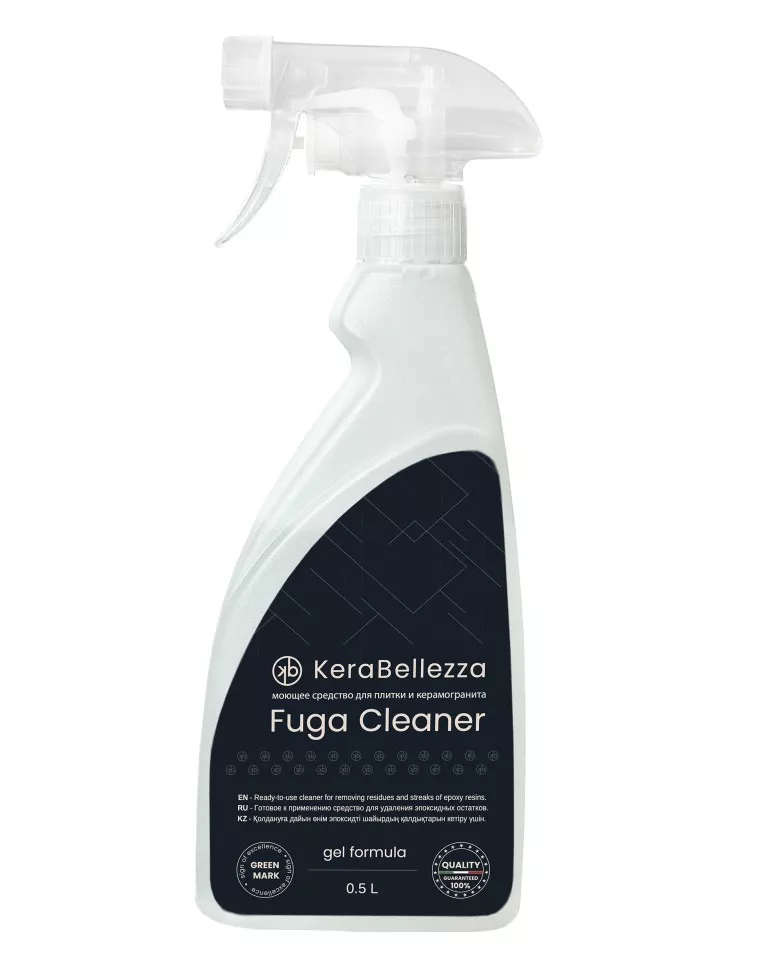 Kerabellezza Fuga Cleaner — это специализированное средство, разработанное для глубокой очистки поверхностей плитки, мозаики и керамогранита. Его основная задача — эффективное удаление остатков эпоксидных составов, разводов, пятен и различных загрязнений. Рекомендуется производить очистку затертой поверхности не ранее, чем через 5ч после затирки швов, и не позднее, чем через 12ч.