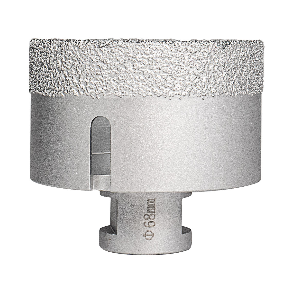 Алмазная коронка Kahito 68мм предназначена для сухого высверливания отверстий в разнообразных материалах с помощью УШМ. Во время использования коронок воск растапливается и улучшает её охлаждение и удаление высверливаемого шлама. После растапливания всего воска коронкой можно продолжать работать. Высота рабочей поверхности (мм.) - 15