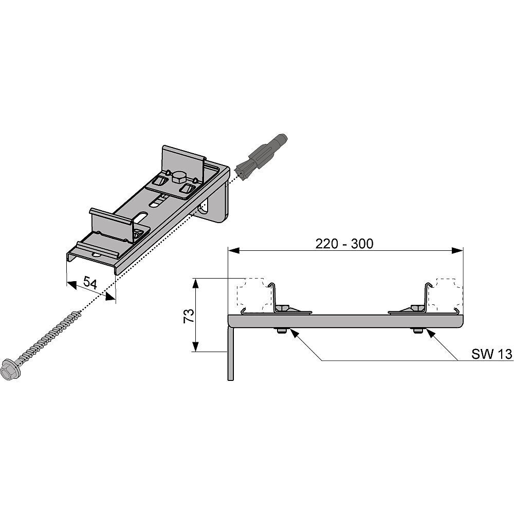 - Назначение: для крепления сантехнического алюминиевого профиля WB 90003 к стенам, полу или потолку