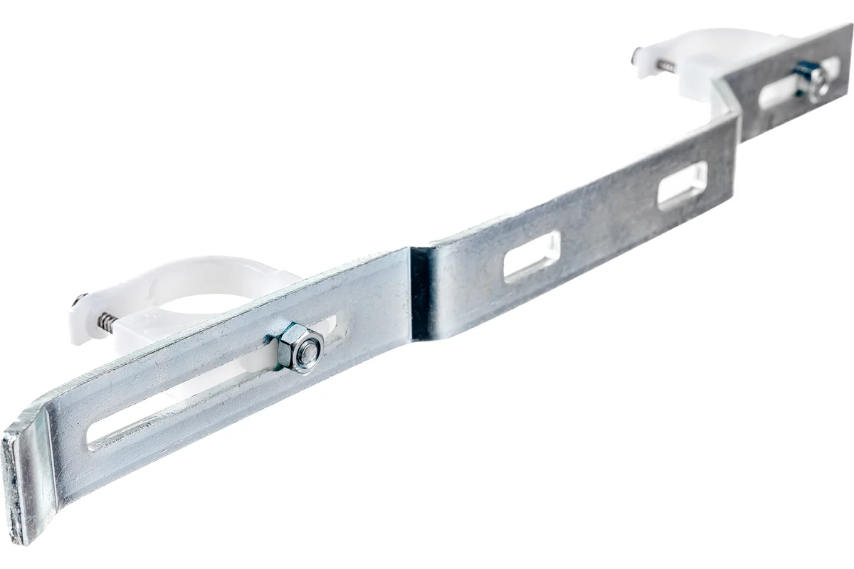 Представляет собой металлическую изогнутую пластину с двумя захватами. Такое изделие крепко фиксирует коллектор в коллекторном шкафу.
