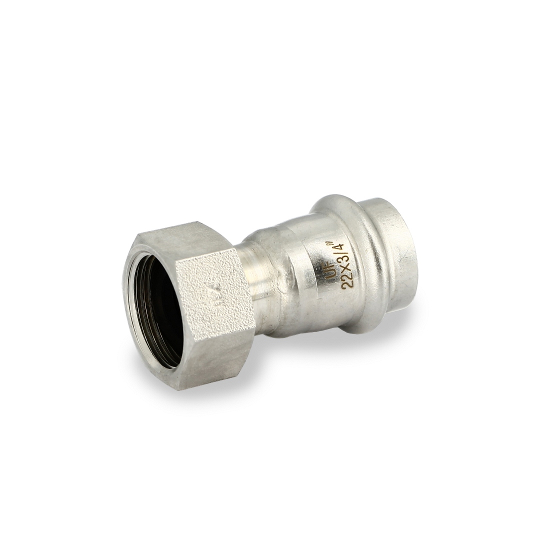 Муфта пресс-В 22 х 3/4" с накидной гайкой, плоской прокладкой, нержавеющая сталь