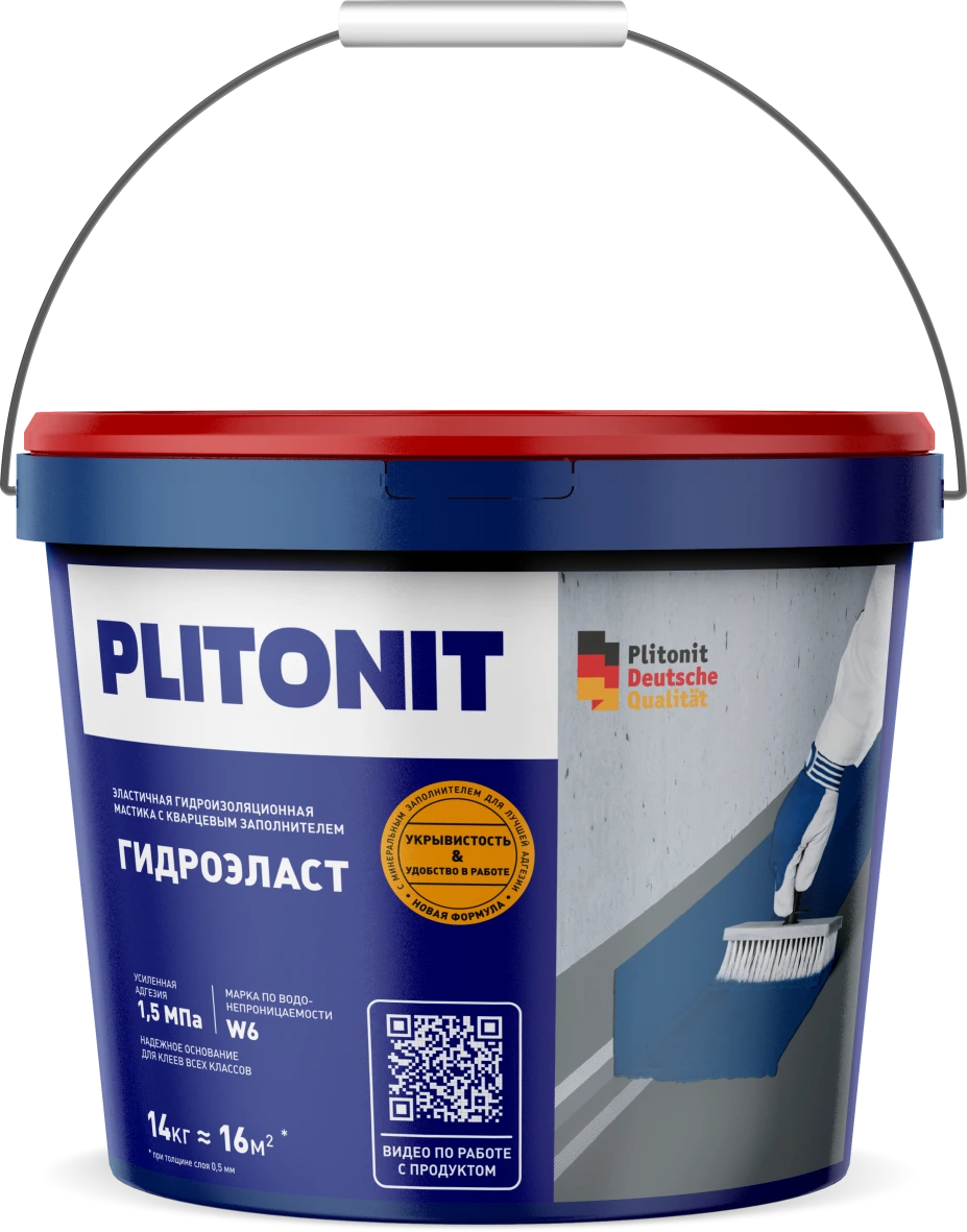 Гидроизоляционная мастика на полимерной основе. Применяется для устройства душевых, в том числе без поддона, ванных, туалетов, прачечных, других влажных помещений и балконов. Подходит для работ по бетону, штукатурке, кирпичной кладке, гипсокартону и гипсовой штукатурке. Подходит для использования в системе «тёплый пол». Марка по водонепроницаемости при прямом давлении w6. Объем 4кг.