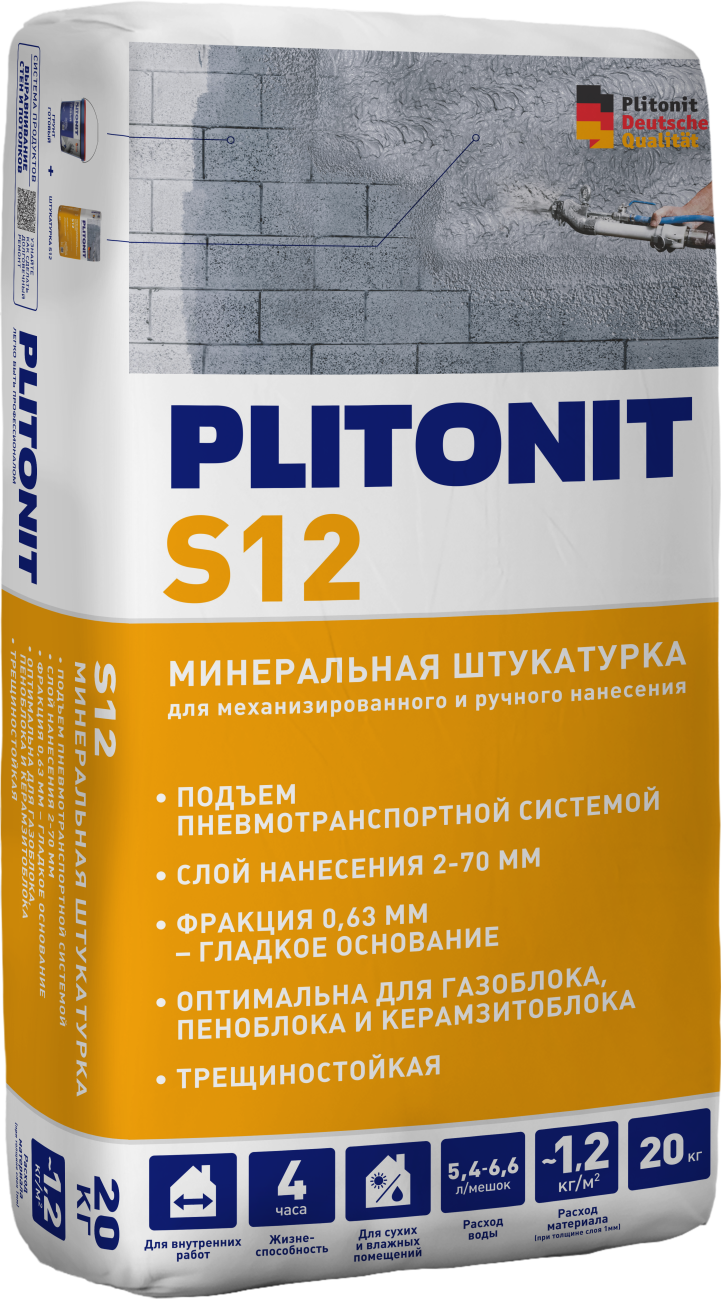 Минеральная штукатурка для механизированного и ручного нанесения. Трещиностойкая и влагостойкая. Оптимальна для газоблока, пеноблока и керамзитоблока. Толщина слоя выравнивания:2-70мм.