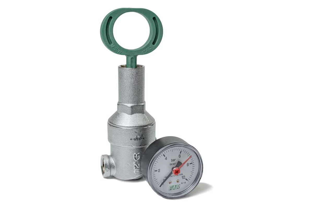 Позволяет избежать повреждения сантехнического оборудования. Дополнительные технические характеристики: максимальная температура - 75 градусов, максимальное входное давление - 25 бар, регулируемое давление после редуктора: от 1 до 6 бар.