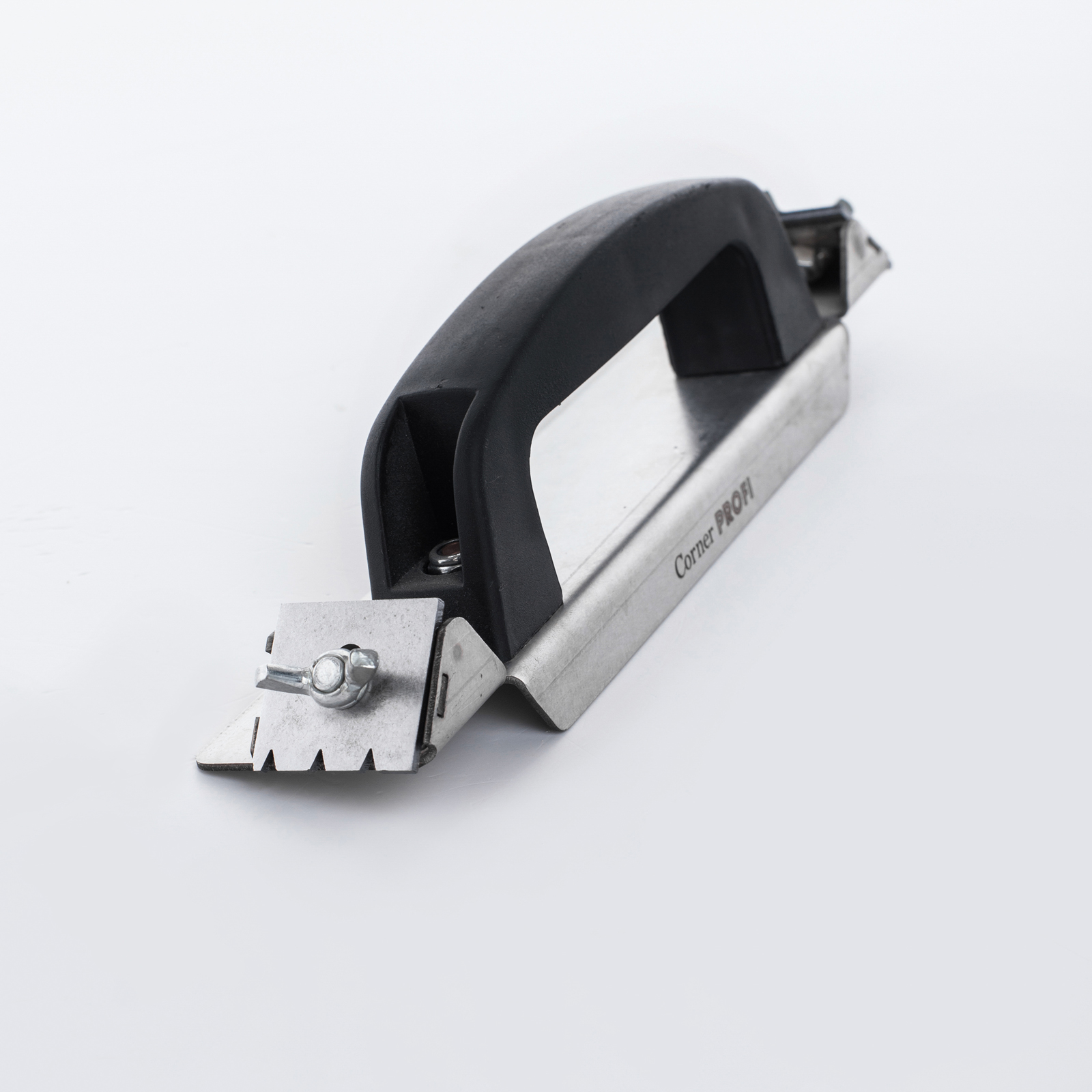 Рубанок для создания углубления в штукатурке на внешних углах перед приклеиванием углозащитной ленты. Позволяет значительно сократить шпаклевочный слой при оттяжке угла. Преимущества: сменные лезвия из закаленной стали, регулируемая глубина подрезки, корпус из нержавеющей стали.