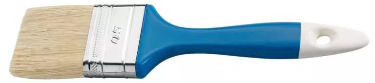 Кисть из натуральной щетины с пластмассовой ручкой. Подходит для алкидных лаков (на основе растворителя), лазурей и красок на водной основе, кисточка для клея. С латунным наконечником и ручкой из лакированной пластмассы. Хорошо подходит для работ с вододисперсионными красками, акриловыми лаками, пропитки-лазури для древесины.