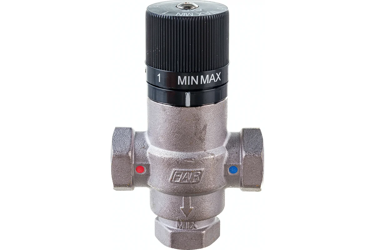 Устанавливается на байпасе перед твердотопливными котлами, чтобы исключить образование конденсата на их греющих поверхностях. Клапан поддерживает температуру теплоносителя на входе в котел на уровне заданной температуры. Специальная ручка позволяет регулировать температуру воды на выходе. Минимальная установочная температура составляет 25°С, а максимальная 65°С.
