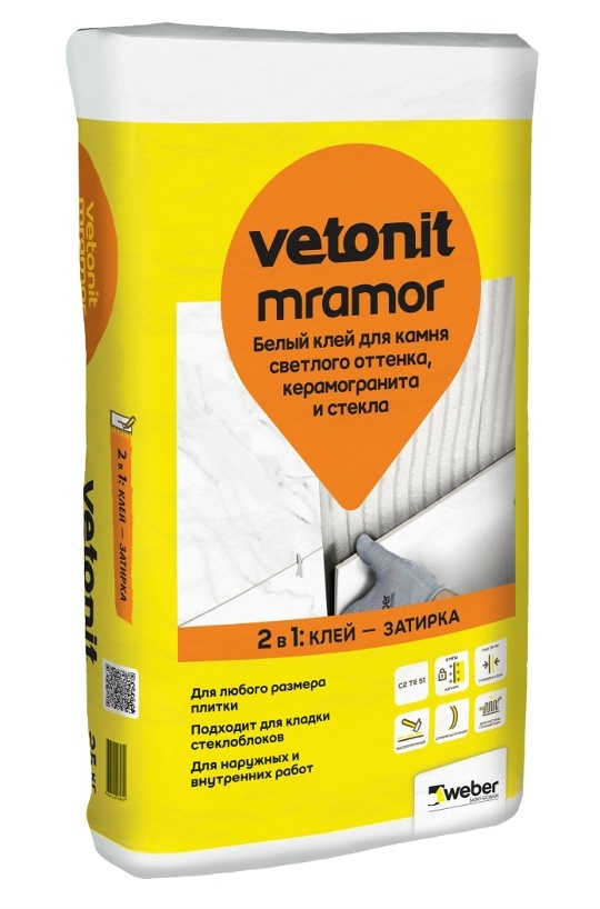 С2ТЕS1. Белый плиточный цементный клей эластичный усиленный с увеличенным открытым временем для натурального камня светлых и темных оттенков и стеклянной плитки, нагруженных полов, для внутренних и наружных работ