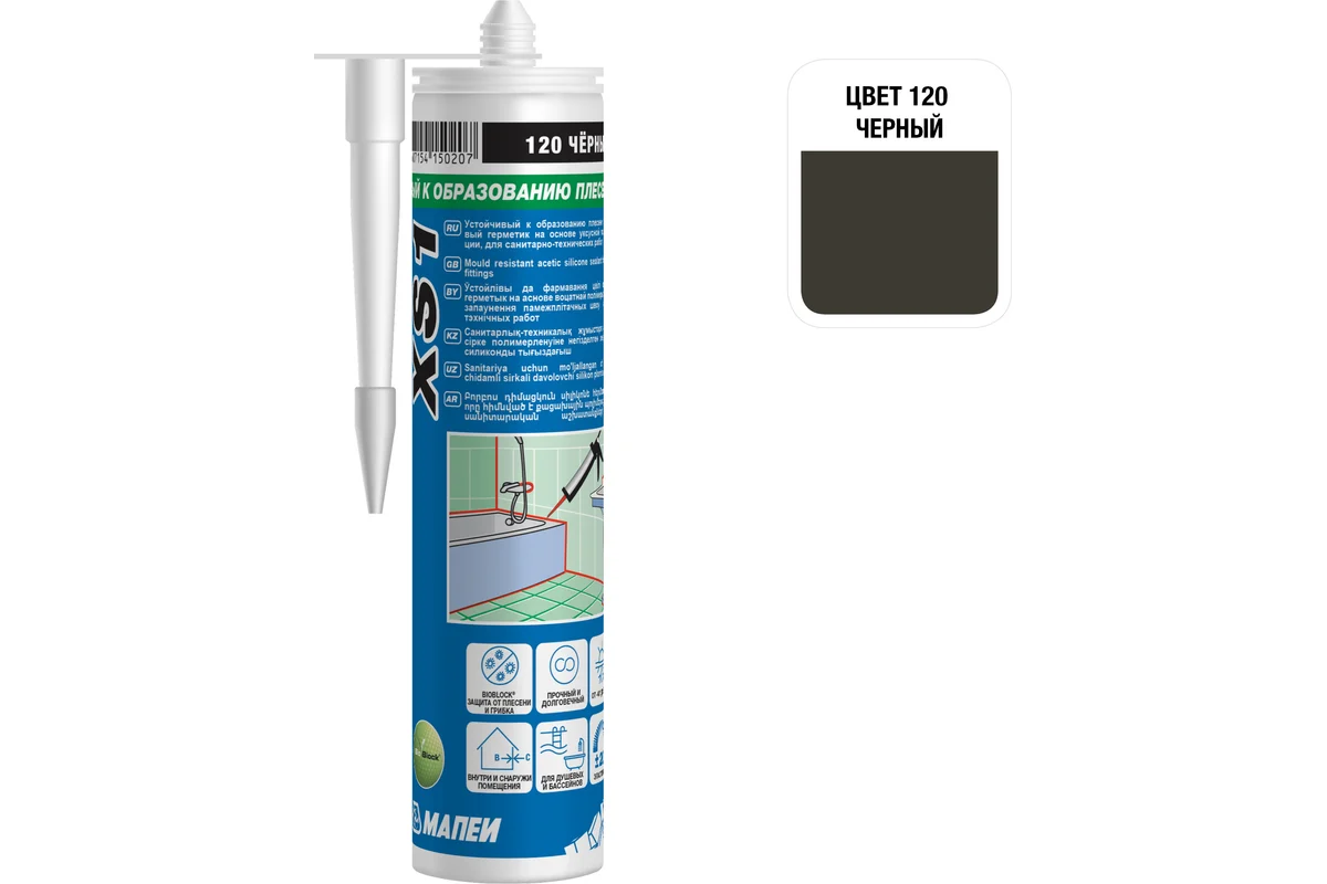 XS1, ТМ МАПЕИ, цвет №120 черный, 300мл, Китай, Герметик силиконовый