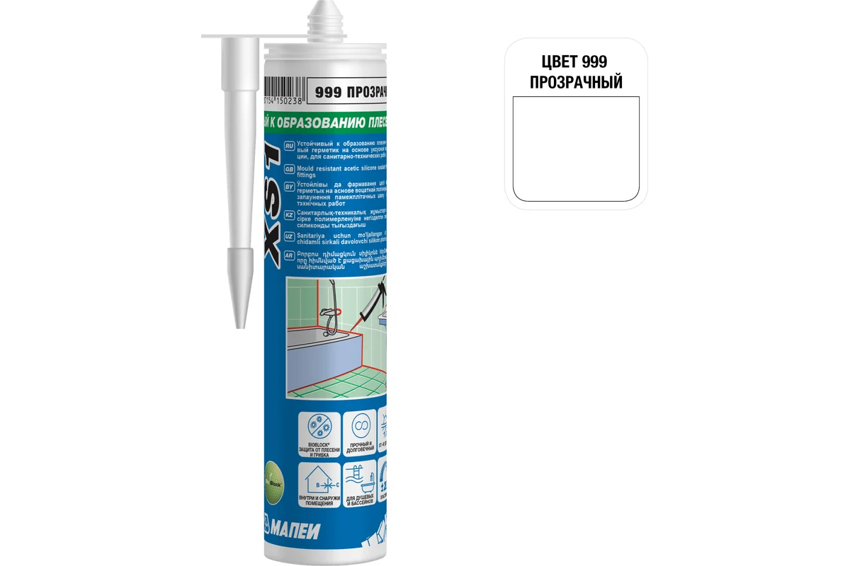 XS1, ТМ МАПЕИ, цвет №999 прозрачный, 300мл, Китай, Герметик силиконовый